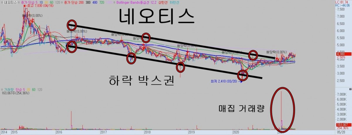 네오티스는 2016 ~ 2020년 까지 하락 박스권을 만들었고,